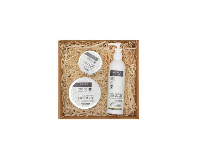 Contiene Crema corporal hidratante 250 ml+ Exfoliante facial 100 ml + Exfoliante corporal arena volcánica y coco 250 ml.