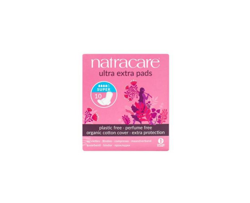 Compresas para la menstruación naturales y absorbentes para flujo medio, con una capa acolchada adicional y con alas. No contienen materiales plásticos, cloro, rayón, látex, aditivos químicos, fragancias ni tintes.
