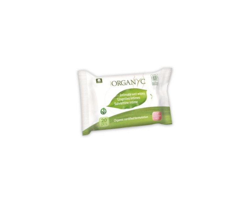 Toallitas húmedas íntimas de algodón orgánico certificado Organ. Están creadas para limpiar suavemente la zona íntima. Están impregnadas de extracto de manzanilla para neutralizar las irritaciones de la piel y ayudar a reducir la inflamación como la picazón y el ardor. La caléndula también se utiliza para calmar la piel, y el ácido láctico que ayuda a estabilizar el equilibrio del pH. No contienen alcohol y están certificadas como orgánicas por ICEA, veganos por VEGANOK y libres de crueldad animal.