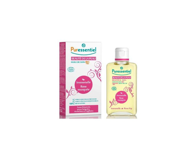 Aceite esencial de: Geranio, helicriso, lavanda vera, ylang-ylang. Aceite vegetal de: borraja, onagra, rosa mosqueta, sésamo.