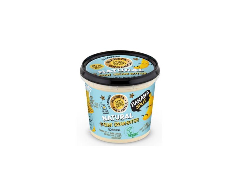 El extracto de plátano orgánico por su alto contenido en potasio, nutre profundamente la piel, dejándola muy suave. Los extractos orgánicos de açai y coco hidratan perfectamente la piel, dejándola tersa y luminosa. La manteca de cacao orgánica aporta tono y elasticidad a la piel.