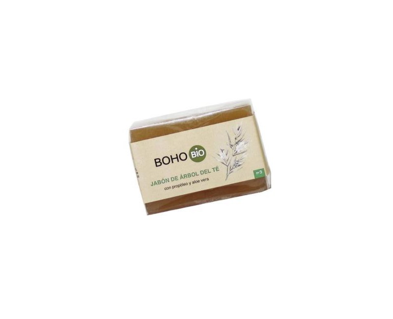 Jabón purificante Bio con aceite esencial de árbol del té, própolis y aloe vera.