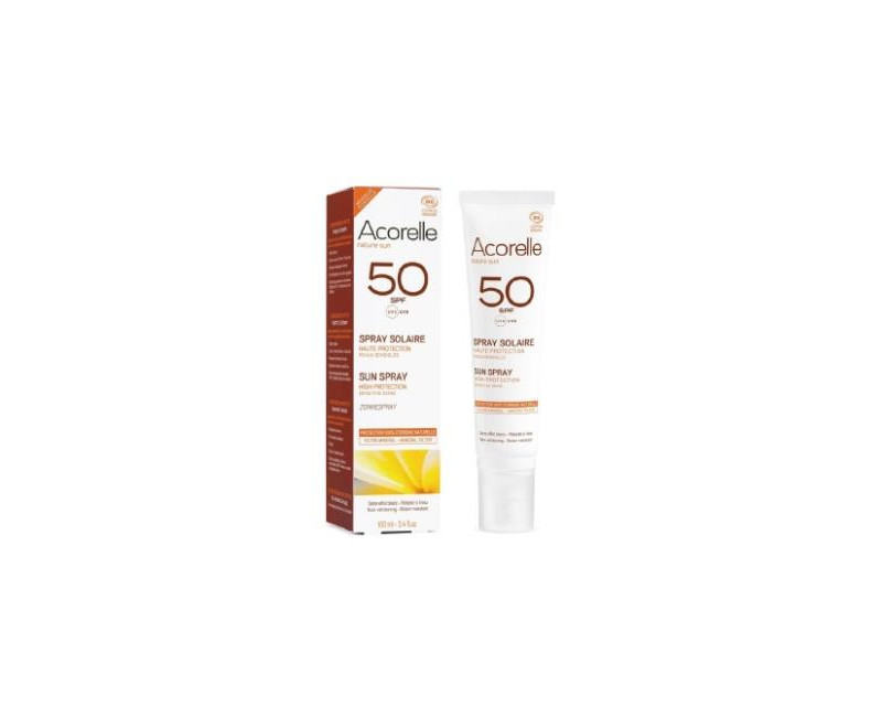 Spray solar corporal que protege de los rayos UVA y UVB. Alta protección (SPF 50) solar gracias al filtro mineral solar. Sin óxido de zinc. Textura fluida. Se extiende fácilmente sin dejar marcas blancas. Especial para pieles sensibles.