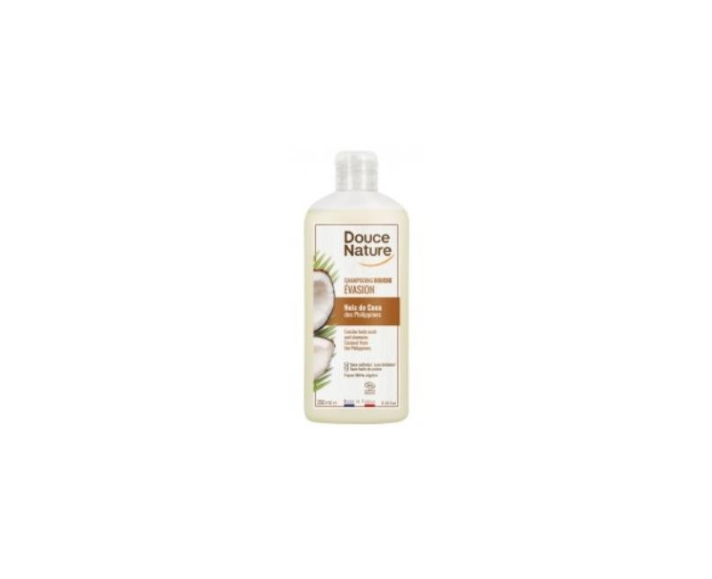 Champú gel de coco para la higiene del cabello y cuerpo. El aceite de coco posee propiedades nutritivas. Sin sulfatos ni jabón. Envase 100% reciclable, vegetal, a base de caña de azúcar.