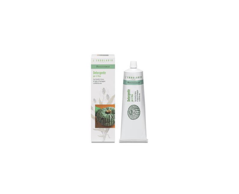 Limpiador orgánico cremoso con calabaza, hojas de plátano y extractos de arándano. Este cosmético está garantizado por la certificación ICEA Eco Bio Cosmetics (Certificación del Instituto de Ética Ambiental).