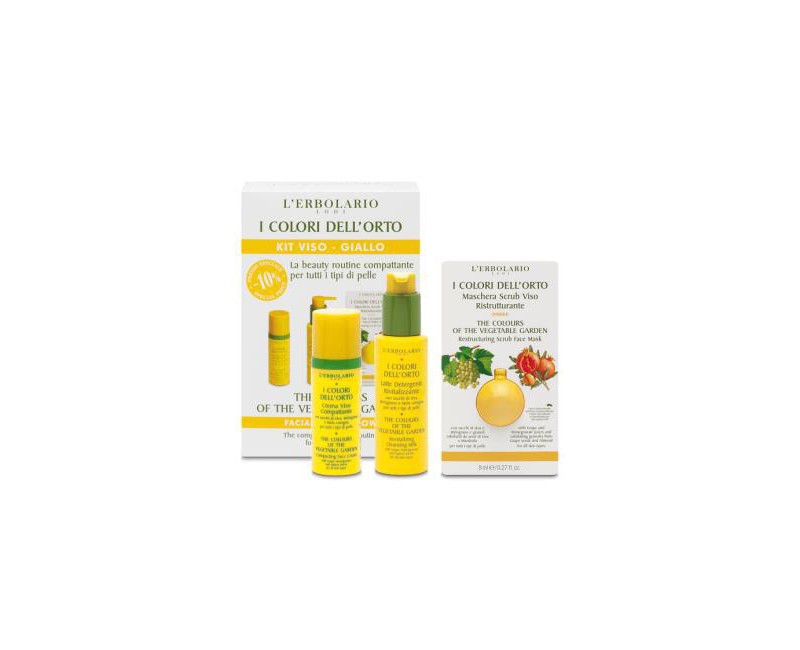 Kit facial 3 en 1 con cosmética compactadora, perfecto para todo tipo de pieles. Contiene: Crema Compactante Rostro Colores del Huerto 50 ml Leche Limpiadora Revitalizante Colores del Huerto 100 ml Mascarilla Exfoliante Reestructurante Colores del Huerto 8 ml