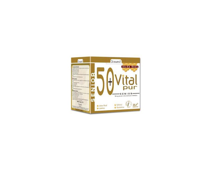Complemento alimenticio, pensado para personas mayores de 50 años. Su ingrediente base es la jalea real (750 mg). La jalea real, es un ingrediente creado por la abejas para alimentar a las crías y a la abeja reina. Vitalpur Senior incorpora magnesio, que contribuye al correcto funcionamiento de los huesos en condiciones normales, minerales como el hierro que ayudan a disminuir el cansancio y la fatiga, ingredientes que contribuyen a la protección de células frente al daño oxidativo e ingredientes que contribuyen al mantenimiento de la visión en condiciones normales.