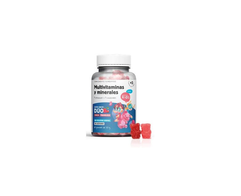 Gominolas para niños con sabor a cereza y frambuesa. Las vitaminas A, C, B6, B12, el ácido fólico, el selenio y el zinc contribuyen al funcionamiento normal del sistema inmunitario. La vitamina D contribuye al buen funcionamiento del sistema inmunitario de los niños. Las vitaminas C, B6, B12, la biotina y el ácido fólico ayudan a la función psicológica normal. Las vitaminas B5, B6, B12 y el ácido fólico ayudan a disminuir el cansancio y la fatiga.