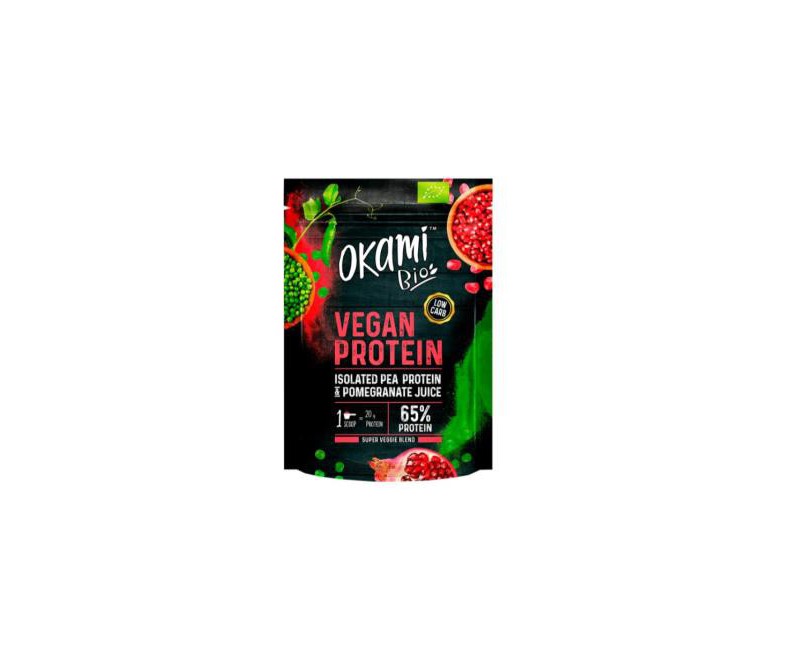 Proteína aislada de guisante*, zumo de granada* Por 1 cacito: Proteína: 20 g (*)= De agricultura orgánica.
