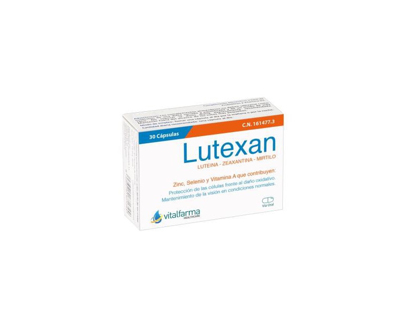 Complemento alimenticio con Luteina, Zeaxantina, Mirtilo, Vitamina A, Cobre, Zinc y Selenio, que contribuyen al mantenimiento de la visión en condiciones normales. Protección de las células frente al daño oxidativo. Mantenimiento de la piel en condiciones normales. Síntesis normal de ADN.