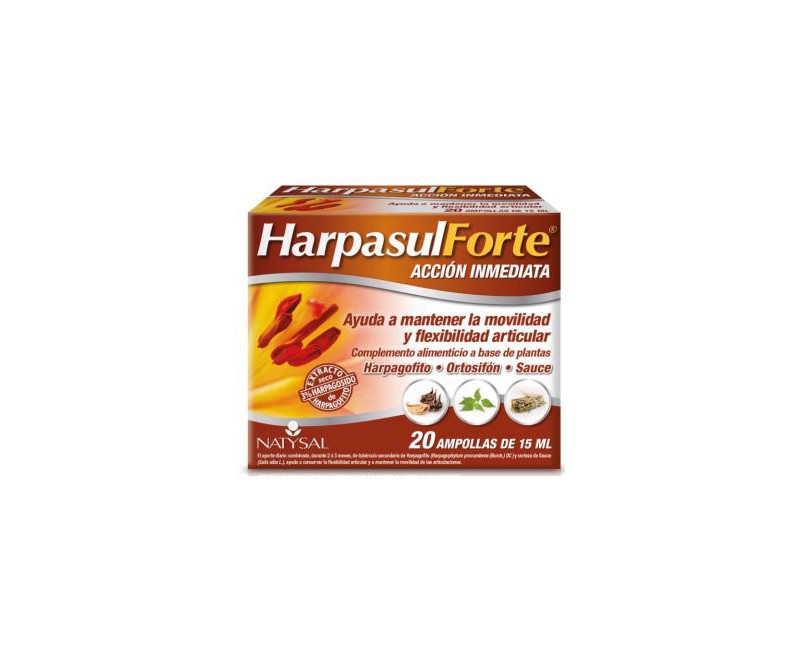 Por 1 ampolla: Concentrado de Raíz de harpagofito (Harpagophytum procumbens) al 1,9% de harpagósidos ... 1125 mg. Concentrado de sauce (Salix alba) al 11.95% en salicina ... 216 mg. Concentrado de ortosifón (Orthosiphon stamineus) al 0,1% en sinensetina ... 144 mg. Agua, glicerina, sorbato potásico, goma xantana, sucralosa, benzoato sódico.