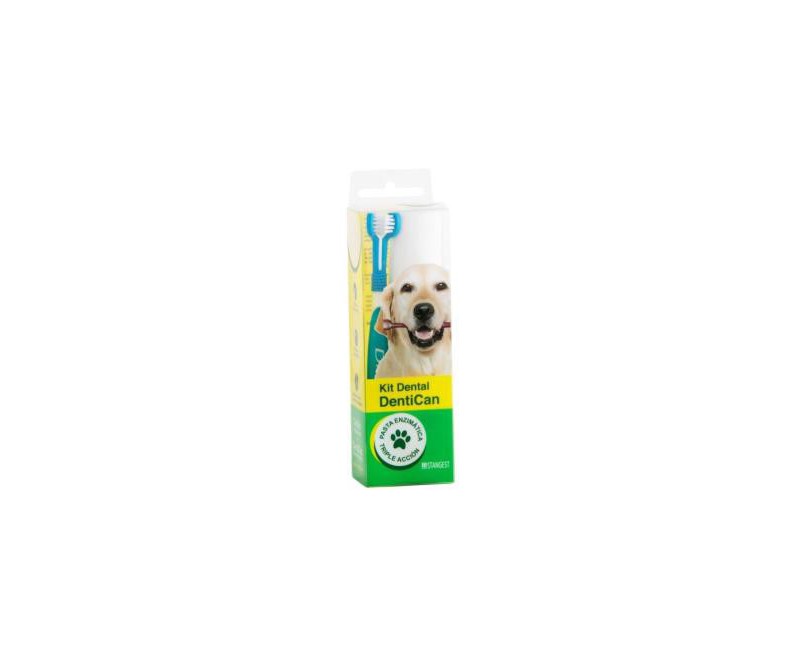 Incluye una pasta enzimática y un cepillo con triple cabezal, constituyendo un cuidado integral para la salud dental del perro.